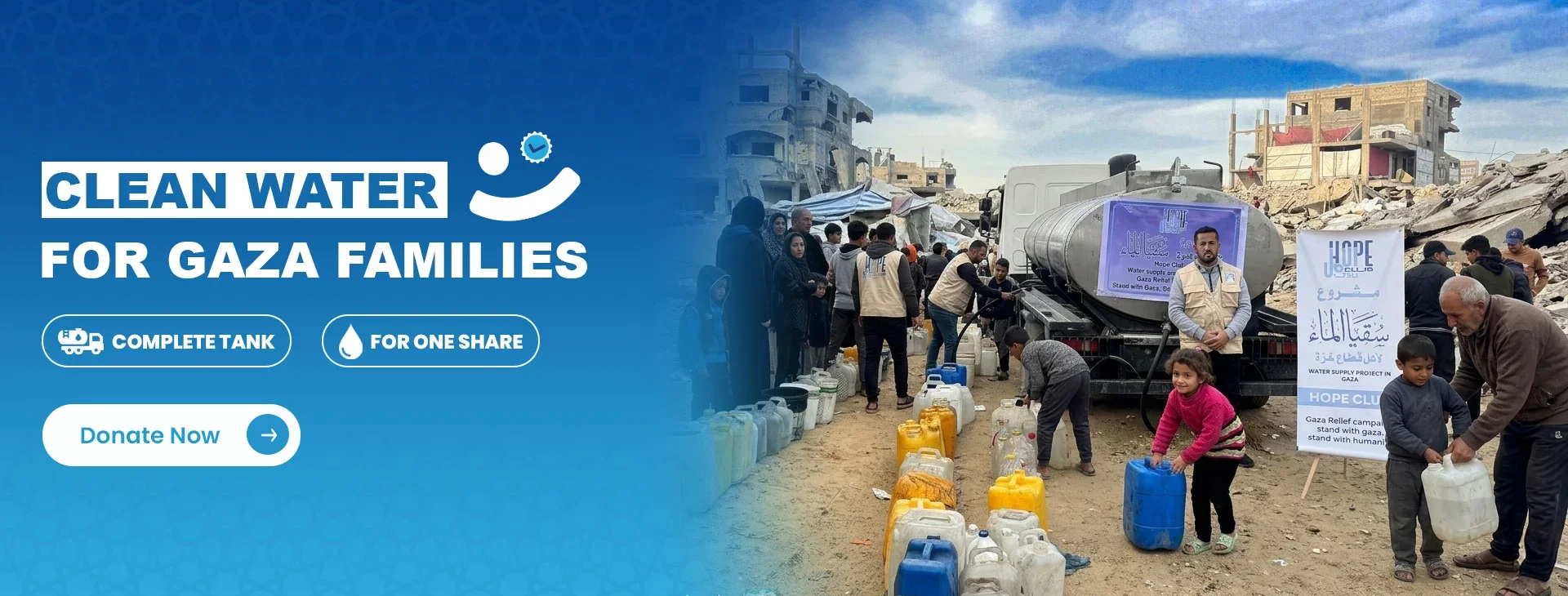 Access to safe drinking water remains limited. Through tanks, wells, and emergency distribution, we help restore clean water for vulnerable families.